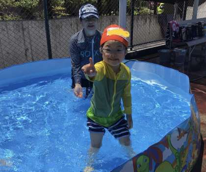 6月19日(水)、わくわくさんのプール開きです。簡易プールに入ったり、低学年プールに入ったりとして、楽しみました。