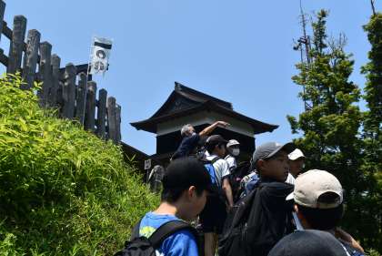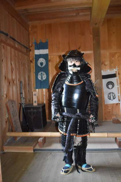 続いての目的地は、足助城です。兜も身につけ、昔の人の気持ちも味わいました。