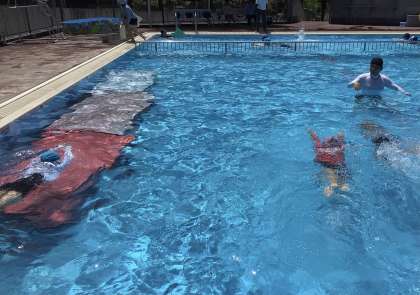 3・4年生 体育 水泳 公開日 2024/06/26 更新日 2024/06/26 各学年から 6月26日(水)、3・4年生の体育も水泳です。3時間目は日差しが広がりました。青空の下、バタ足や蹴伸びを繰り返し練習していました。
