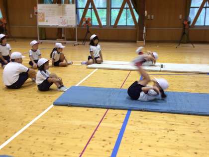 1・2年生 体育 後ろ回り 公開日 2024/06/28 更新日 2024/06/28 各学年から 6月29日(金)、雨でプールには入れませんでしたが、講堂で後ろ回りの練習をしました。 手を広げてしっかりつき、おへそを見てくるりと回ると・・・後ろ回りができました。