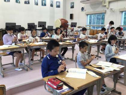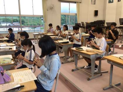 5年生 音楽 リコーダー 公開日 2024/07/01 更新日 2024/07/01 各学年から 7月1日(月)、5年生のリコーダー練習です。わからないところは友達に教えてもらい、こつこつ練習していました。