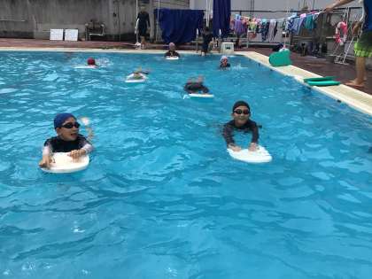 バタ足の練習、カエル足の練習に取り組んでいます。