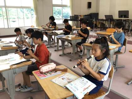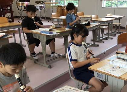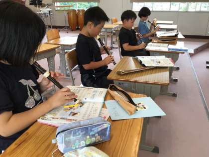 3年生 音楽 リコーダー練習 公開日 2024/07/02 更新日 2024/07/02 各学年から 7月2日(火)、3年生のリコーダー練習の様子です。ソラシドの音を使って曲を演奏します。きれいな音が出るように、繰り返し練習していました。