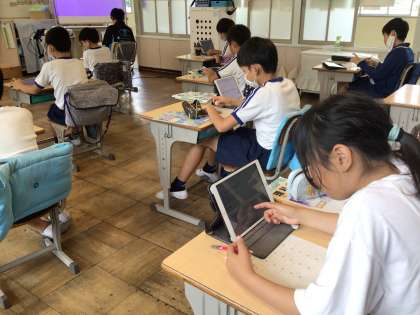6年生 理科 食物連鎖 公開日 2024/07/03 更新日 2024/07/03 各学年から 7月3日(水)、6年生は理科で、タブレットで調べながら食物連鎖のつながりを各自作成していました。人間をどこにいれるかも考えていました。