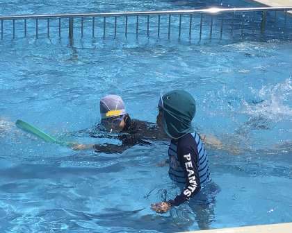 7月4日(木)、わくわく学級の水泳学習です。それぞれのできることが進歩しています。