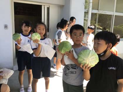 3年生 キャベツ持ち帰り 公開日 2024/07/05 更新日 2024/07/05 各学年から 7月5日(金)、3年生はキャベツ持ち帰りのジャンケンで盛り上がっていました。これは、理科のモンシロチョウの幼虫のために育てていたものですが、その役目を終え、収穫できるようになりました。お家でおいしく食べてくださいね。