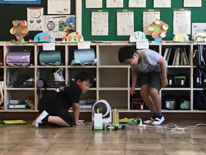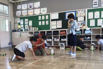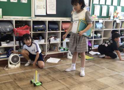 3年生 理科 風の力 公開日 2024/07/05 更新日 2024/07/05 各学年から 7月5日(金)、3年生は理科で風の力でどれだけ車が進むかを実験していました。風を強くすると、ぐいぐい進んで大喜びです。