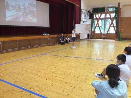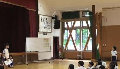 全校スピーチ 1 公開日 2024/07/08 更新日 2024/07/08 学校の特色ある活動 7月8日(月)、朝の活動では、おしゃべりタイムで選ばれたスピーチマスター内の二人が、「心に残った授業」をテーマに発表しました。 初めは、「家庭科の調理実習」のことです。わかりやすく伝えました。質問や感想も手があがりました。話を聞く視線も、みんな意識しています。
