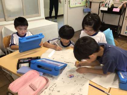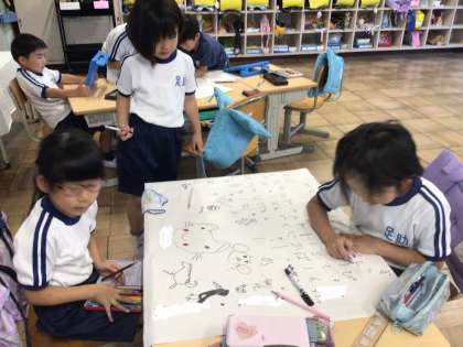 1年生 国語 オリジナルことばあそびうた 公開日 2024/07/12 更新日 2024/07/12 各学年から 7月12日(金)、1年生はオリジナルのことばあそびうたを考えて、グループでまとめ、イラストを描いています。かわいいことばに、かわいいイラストがつきました。