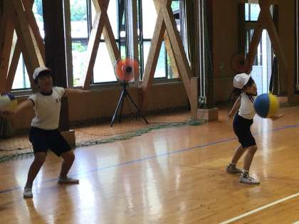 4年生 体育 ボールを使って 公開日 2024/07/17 更新日 2024/07/17 各学年から 7月17日(水)、3年生が校外学習に出かけたので、4年生だけの体育でした。ボールを使ったいろいろな技を磨いています。背面キャッチには大苦戦でしたが、少しずつできた子も現れました。
