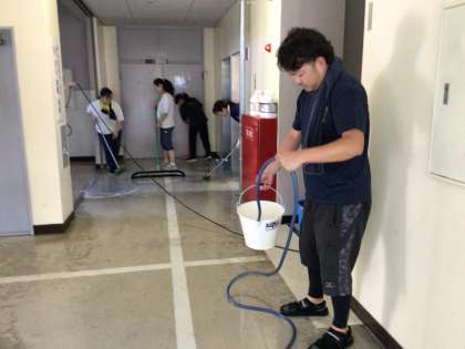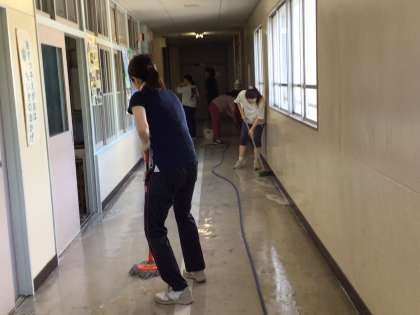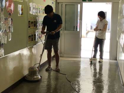 今日は、先生たちが力を合わせて、職員作業を行いました。9月に学校に来た子どもたちがびっくりするくらい、1階と2階の廊下をぴかぴかに磨きました。9月2日は楽しみにして登校してくださいね。