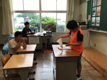 夏休み明けですが、いつも通りに司会進行できました。みんな「元気」と答えていました。7月からの日めくりカレンダーをめくるのが大変でした。