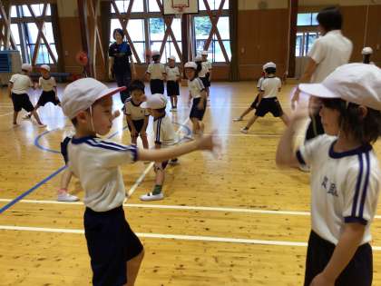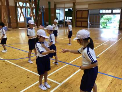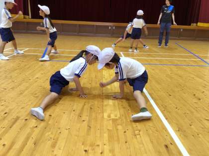 9月2日(月)、1・2年生は体育で、じゃんけんして負けたら少しずつ足を広げていくゲームをしていました。足が広がらなくなったら降参なのですが、降参にならないくらいどこまでも足が広がっていてびっくり。
