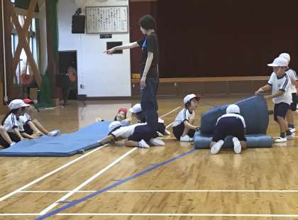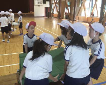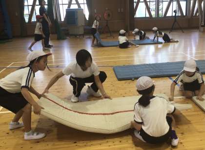 1・2年生 体育 マット運動 公開日 2024/09/09 更新日 2024/09/09 各学年から 9月9日(月)、マット運動のためのマットは、自分たちで協力して運んでいます。重いけれど、みんなで力を合わせて準備します。