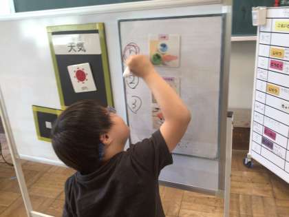 9月11日(水)、わくわく1組さんの学習です。二つの課題のどちらをするのか自分で決めて、順番に取り組んでいきます。できたら、自分でぐるぐる丸をつけて、次に進んでいきます。