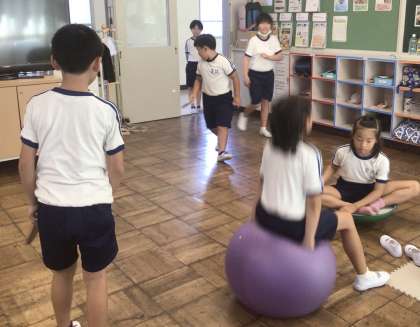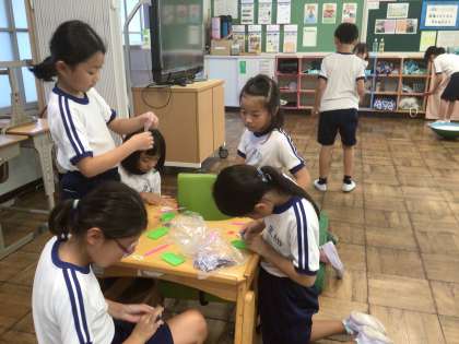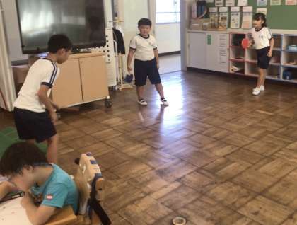 9月11日(水)、今日のあすっこタイムは、WBGTの値が高く、外遊びは中止になりました。こんな感じで、室内で過ごしています。