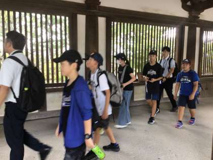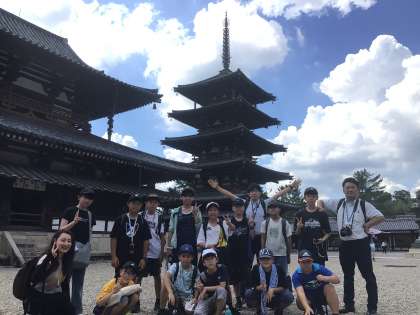 金堂前、五重の塔前で、記念撮影です。