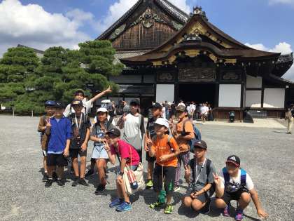 6年生 修学旅行2日目 二条城2 公開日 2024/09/13 更新日 2024/09/13 各学年から 内部は撮影禁止なので、眩しい日差しの中で撮影しました。 自販機で飲み物を買って、いよいよ最後の目的地、清水寺に向かいます。