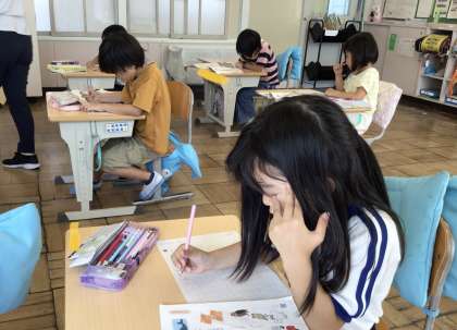 1年生 国語 かぞえうた 公開日 2024/09/17 更新日 2024/09/17 各学年から 9月17日(火)、1年生は漢字の一から十までを使って、「かぞえうた」の学習です。一生懸命漢字を書き進めたり、お互いに書いた字を見合ったりしていました。
