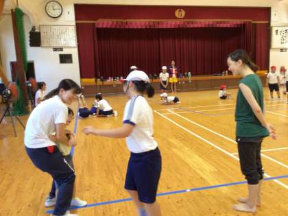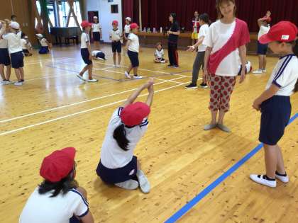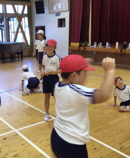 3・4年生 コミュニケーション能力向上事業 3回目 公開日 2024/09/18 更新日 2024/09/18 各学年から 3・4年生は、3人組で、次々に連想したものを演じていました。自由に体を動かして、話がつながっていきました。