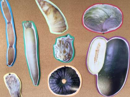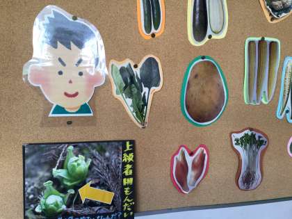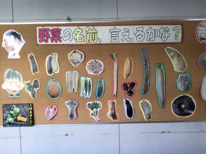 保健室前の掲示です。野菜の名前、全部わかりますか?