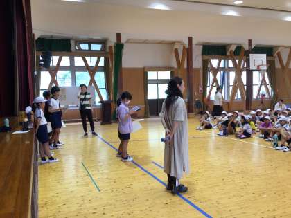 9月19日(木)、健康委員会が体を動かして遊ぶきっかけになるように、全校遊びを4日間企画しました。1日の今日は、鬼ごっこです。本当は外遊びを考えていたのですが、やはりWBGTが高く、講堂での「はいはい鬼ごっこ」に変更になりました。参加した人にスタンプを押していき、4日中3日参加すると、賞がもらえます。