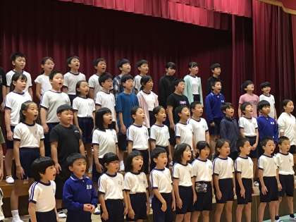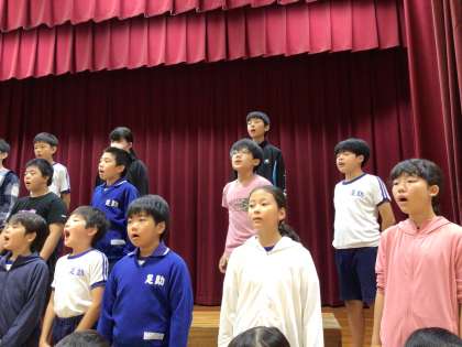 一度合わせて歌ってみると、講堂に声が響きわたることに驚く姿もありました。いい顔、歌っています。