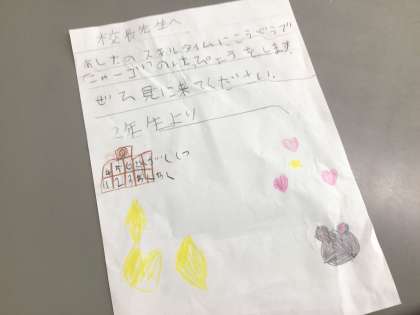 10月1日(火)、2年生が1,3年生や先生たちを招待して、国語で学習した「ニャーゴ」を劇仕立てで発表しました。小道具や大道具も自分たちで作ったそうです。素敵な招待状も届きました。