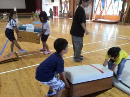 2年生 てきぱき片付け 公開日 2024/10/01 更新日 2024/10/01 各学年から 10月1日(火)、わくわく1組の授業の後、跳び箱や平均台などを片付けようとしているところに、2年生がやってきました。「手伝います」と、てきぱきと片付けをしてくれました。その素早さと優しい気持ちに感心しました。2年生のみなさん、とてもうれしかったです。ありがとう。