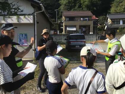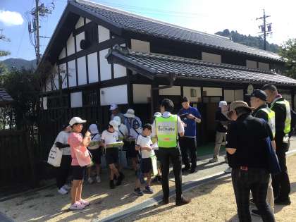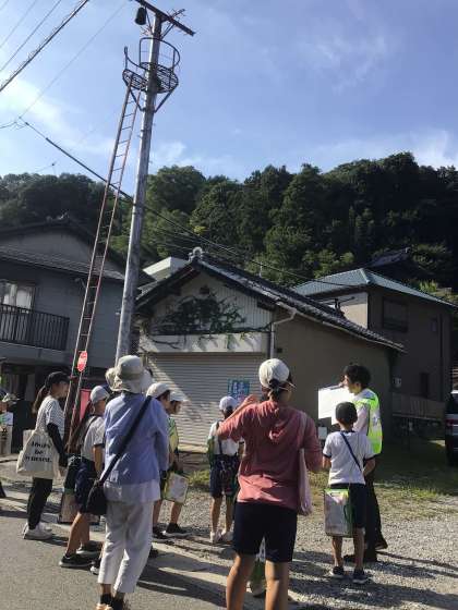 10月2日(水)、4年生が、足助の防災部会の方たちと一緒に、防災町歩きをしました。