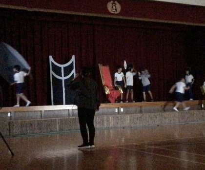 3・4年生 学芸会練習 公開日 2024/10/07 更新日 2024/10/07 各学年から 10月7日(月)の学芸会の練習です。明日が下見会なので、大道具を動かしたり、衣装を着たりしながらの練習です。