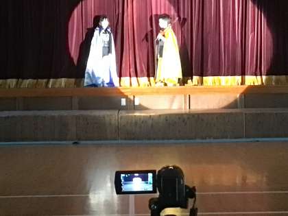 1・2年生 学芸会 下見会 公開日 2024/10/08 更新日 2024/10/08 学校行事 10月8日(火)、学芸会の下見会が始まりました。 最初は、1・2年生です。衣装ばっちり、セリフばっちりの素晴らしい出来栄えでした。でも、ここから予行練習、本番と、さらにいい劇にしてほしいので、見た先生からいろいろなアドバイスをしました。みんなで、もっともっといい劇に仕上げてくださいね。