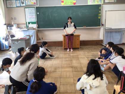 おしゃべりタイム トークトレーニング 2 公開日 2024/10/10 更新日 2024/10/10 特別活動 口パクで、何を言っているか当てるクイズは、みんなで一生懸命口に注目します。言う人も、口をしっかり開けて言わなくてはいけません。言葉を通して、笑顔がたくさん見られる時間になっています。