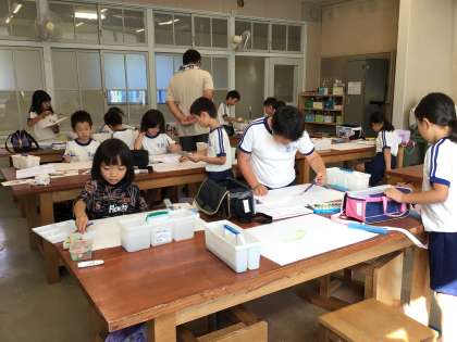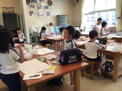 2年生 図工 読書感想画 公開日 2024/10/11 更新日 2024/10/11 各学年から 10月11日(金)、2年生は、読書感想画で大きな「シロナガスクジラ」を描いています。お腹の白いところから描き始めました。どこに描いてあるか、わかりますか?