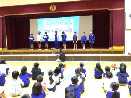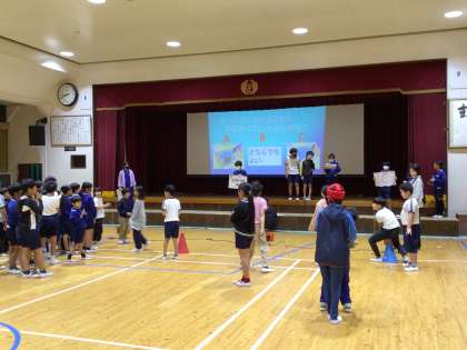 情報委員会 電子機器についての集会 公開日 2024/10/15 更新日 2024/10/15 特別活動 10月15日(火)、今日から後期が始まりました。 朝の活動は、前期の情報委員会が電子機器の使い方を考える集会を開きました。事前にアンケートした、家でのゲームや動画を見る時間の結果を知らせたり、学習用タブレットの使い方クイズで正しい使い方をみんなで確認したりしました。 これからさらに活用するだろう電子機器を、自分たちのために正しく安全に使うきっかけとなりました。