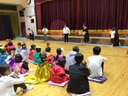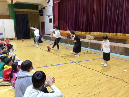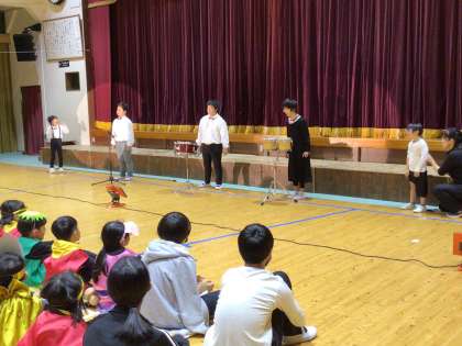 校内学芸会 開会宣言 公開日 2024/10/16 更新日 2024/10/16 学校行事 10月16日(水)、校内学芸会を行いました。全校のみんなに見てもらう、たった一度の機会なので、やる気十分です。 最初は、わくわく学級の開会宣言です。みんなも手拍手で応援しました。