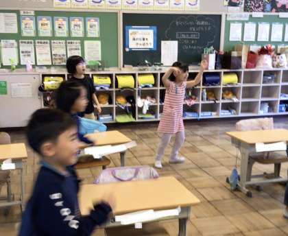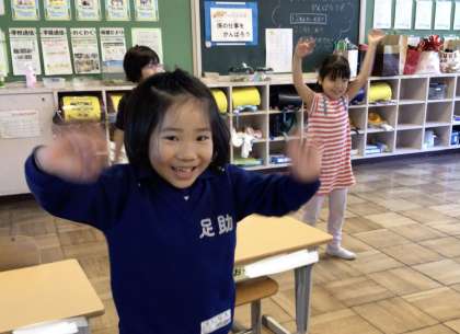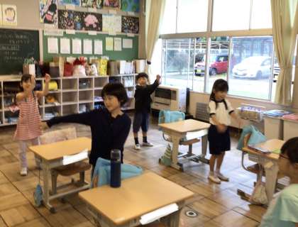 10月17日(木)、1年生は、朝の会も元気よく学芸会の劇の歌の練習です。これは、火の精の歌です。