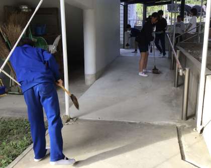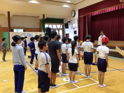 6時間目に、5・6年生が、講堂を掃除し、明日の係の準備をしました。