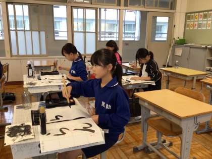4年生 毛筆「らん」 公開日 2024/10/29 更新日 2024/10/29 各学年から 10月29日(火)、4年生は毛筆で「らん」と書いていました。筆の持ち方、角度を確認しながら練習していきます。姿勢も意識していますね。