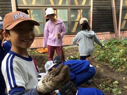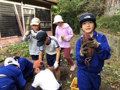 3年生 芋掘り 公開日 2024/10/31 更新日 2024/10/31 各学年から 10月31日(木)、今日の2時間目は3年生と4年生が畑でサツマイモを掘りました。大きなイモも小さなイモも掘り上げました。