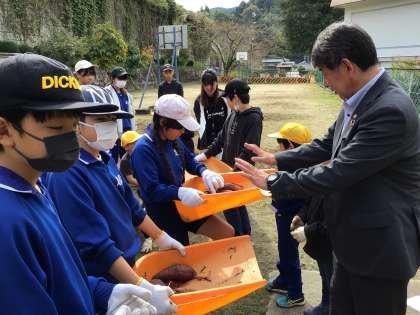 教育長様がみえました 公開日 2024/10/31 更新日 2024/10/31 校長室から 10月31日(木)、教育長様が足助小学校を訪問してくださいました。 1年生と6年生が芋掘りをしているところや3・4年生がダンスをしているところなどを見ていただきました。「グループでよく話し合っているね」とほめていただきました。 教育長様、今日は本当にありがとうございました。