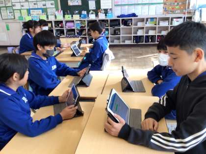 6年生は、テーマに沿って、自分の立場を立場を明確にした討論です。自分の根拠を示して話しながらも、相手の意見を否定しないことや最後まで話を聞くことなど、互いを尊重した討論になるように取り組んでいました。