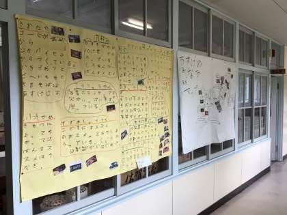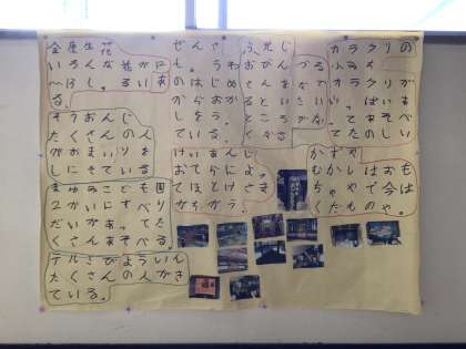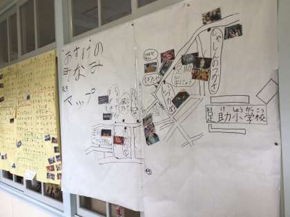 2年生 足助の宝マップ 公開日 2024/11/08 更新日 2024/11/08 各学年から 2年生が足助の町を探検してまとめた「お宝マップ」を全校に見てもらいたいと、図工室前に掲示しました。子どもたちの大切に思っている場所がたくさん書かれています。足助の素敵さが詰まっています。