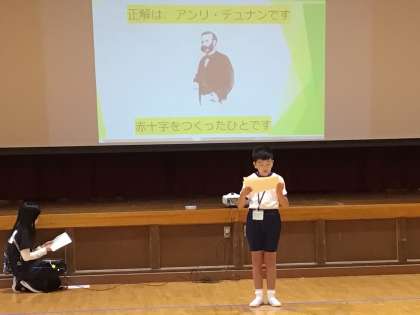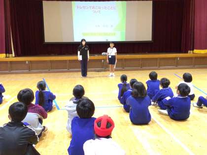 11月11日(月)の全校集会では、夏休みに学校の代表として豊田市リーダーシップトレーニングセンターに参加した児童が、活動の内容と感じたことをまとめて発表しました。そして、最後に課題解決しようと思ったこと、足助小学校でやってみたいことは「学校を今よりもっとぴかぴかにする」ことだと話しました。このために、これから取り組んでいくこと、みんなからもアイデアがほしいとも話していました。