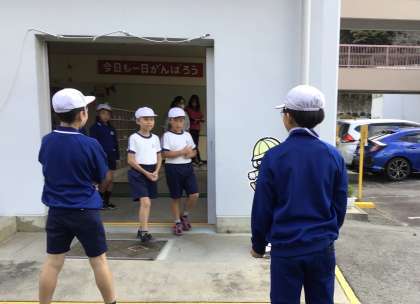 わくわくさわやかあいさつ大作戦 公開日 2024/11/12 更新日 2024/11/12 特別活動 11月12日(火)、昨日のお知らせ通り、運営委員会の「わくわくさわやかあいさつ大作戦」が始まりました。少し恥ずかしそうな運営委員さんたちでしたが、みんながあいさつを返してくれるとどんどん元気な声が出てきました。みんなも笑顔で運動場に向かいました。 1日目は成功です。これがあすっこみんなで続けていけるように取り組んでほしいです。
