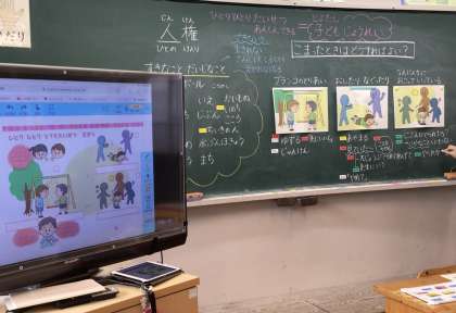 1年生 人権についての学習 公開日 2024/11/19 更新日 2024/11/19 各学年から 11月19日(火)、1年生は人権について考えていました。難しい言葉ですが、友達と遊んでいるとき、みんなが気持ちよく遊べるためにはどうしたらよいかを話し合うと、みんなの大切な権利である人権を考えることにつながります。こうするといいよ、といいアイデアがたくさん出てきていました。