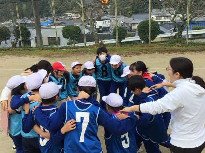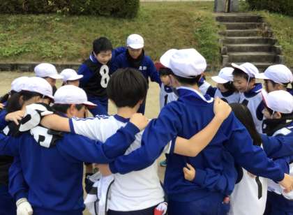 「絶対勝つぞ」「オー」、「優勝するぞ」「オー」の声が、運動場に響きました。