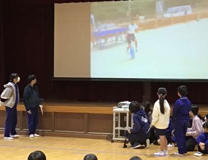 情報委員会「出でよ あすっこヒーローズ」 1 公開日 2024/11/25 更新日 2024/11/25 学校の特色ある活動 11月25日(月)、今日の朝の活動は情報委員会による「出でよ あすっこヒーローズ」です。 今日はたくさんのヒーローたちが登場しました。最初に登場したのはゲームのヒーローと一輪車のヒーローです。映像で発表しました。司会の情報委員さんが見どころをインタビューします。