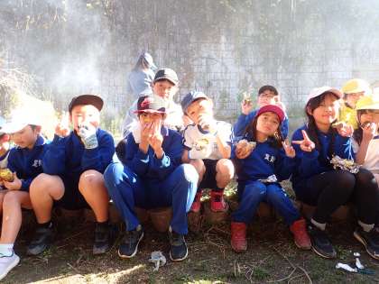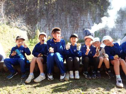 みんなで食べるやきいもは格別ですね。6年生のお兄さん、お姉さんたち、ありがとう。