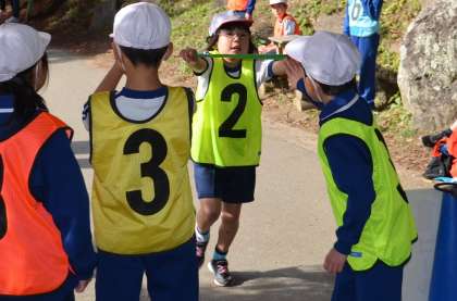 4色対抗駅伝大会 2 公開日 2024/12/05 更新日 2024/12/05 学校行事 スタートは1年生が並びました。ピストルの音と同時に元気よく飛び出しました。 そして、次に待つチームの子に向かって、一生懸命走ります。